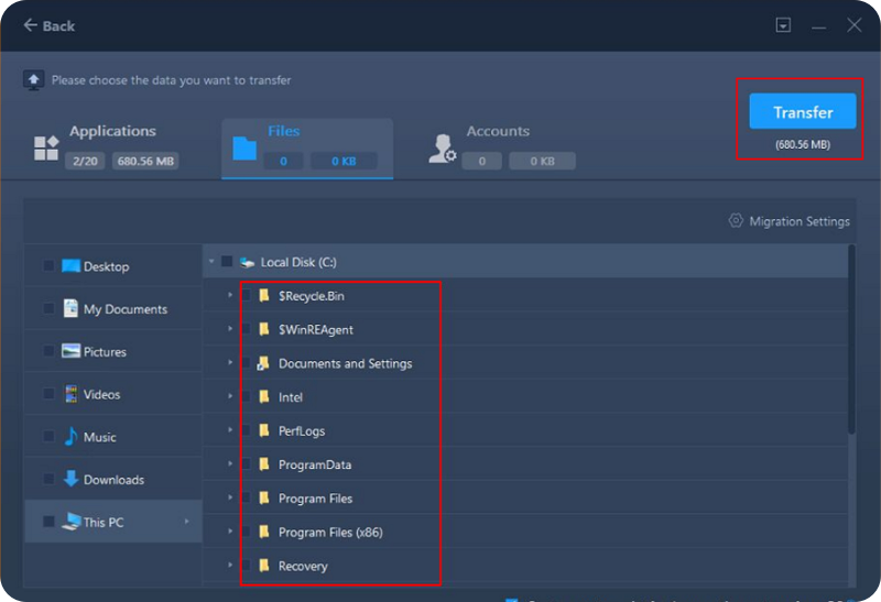 Liberare o estendere l'unità C per garantire un aggiornamento senza problemi
