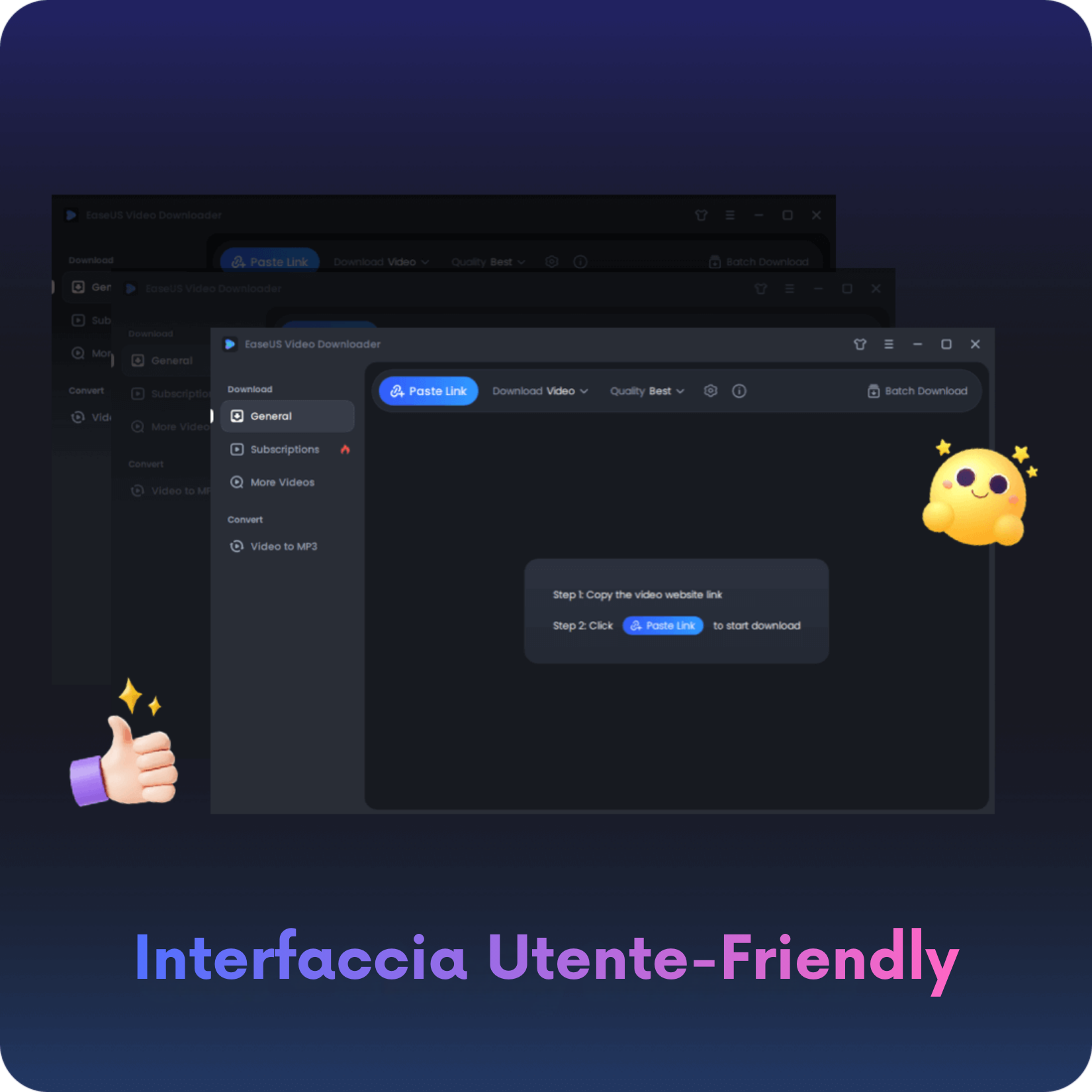 • "Sebbene EaseUS Video Downloader sia originariamente uno strumento di download, è anche un'applicazione perfetta per convertire video in MP3. Con EaseUS Video Downloader, puoi convertire sia un singolo video che un'intera playlist in MP3 in alta qualità."